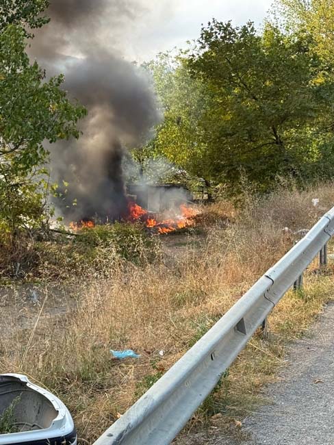 Zonguldak'ın Çaycuma ilçesinde bir otomobil, başka bir otomobile çarptıktan sonra şarampole uçtu. Kazada otomobil alev topuna dönerken, sürücü alevlerin arasında kalmaktan son anda kurtuldu.