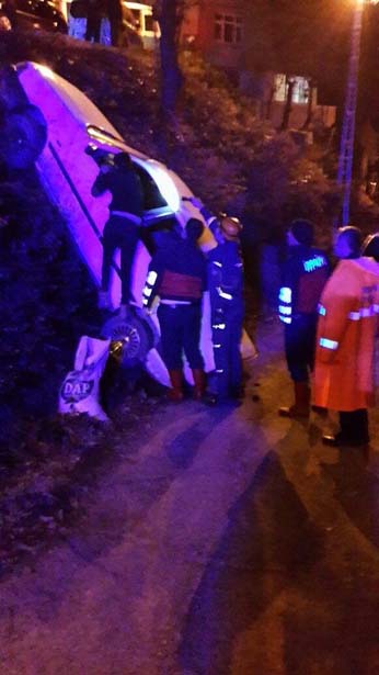 Edinilen bilgiye göre olay, akşam saatlerinden Zonguldak Rat Mahallesi Kuruçeşme Sokakta meydana geldi. Sürücüsü tespit edilemeyen 67 LK 039 plakalı araç şarampole yuvarlandı. Araç içerisinde bulunan Alparslan K., Bilal E., ve Mustafa G, hafif şekilde yaralandı. Araçta sıkışan şahısları Zonguldak AFAD ekipleri araçtan çıkardı. Olay yerine gelen sağlık ekipleri araç içinde sıkışan yaralılara ilk müdahaleyi yaptı. Atatürk Devlet Hastanesine kaldırılan yaralıların durumunun iyi olduğu öğrenildi. Kaza sonrası olay yerinde ayrılan ve kimliği tespit edilemeyen sürücü aranıyor. Polis olayla ilgili soruşturma başlattı.