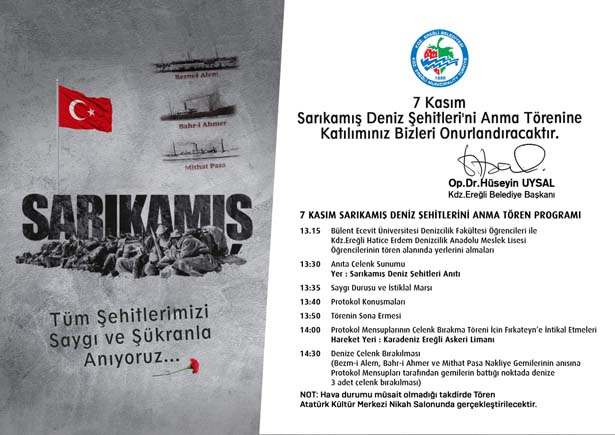 Zonguldak'ın Karadeniz Ereğli ilçesinde Sarıkamış Deniz Şehitleri anılacak.