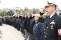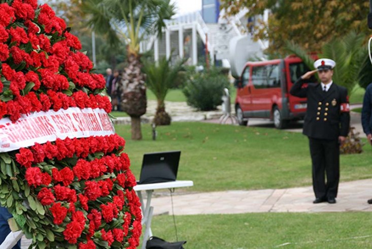Törende Bezm-i Alem, Bahr-i Ahmer ve Mithat Paşa gemilerinde yaşamını yitiren denizciler anısına saygı duruşunda bulunuldu, İstiklal Marşı okundu.