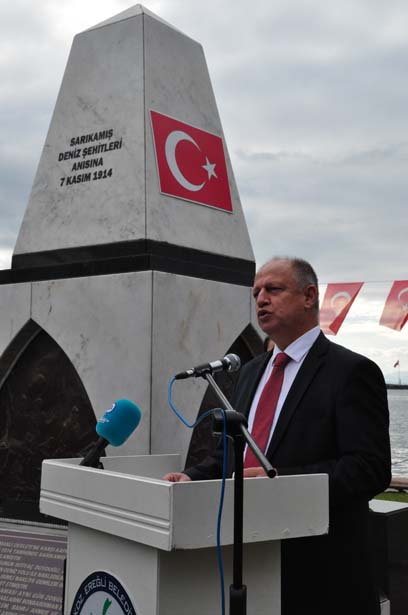 Kdz.Ereğli Belediye Başkanı Halil Posbıyık da yaptığı konuşmada 3 geminin Kdz. Ereğli açıklarında Rus donanması tarafından batırıldığını belirterek 221 şehitin ismini Kdz.Ereğli’de yaşattıklarını söyledi.