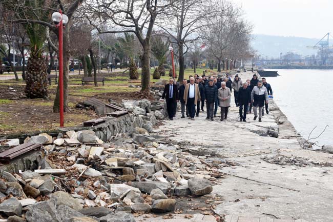 Kdz. Ereğli Belediye Başkanı Halil Posbıyık, ’30 yılda ilmek ilmek ördüm’ dediği, 19 Kasımda yaşanan tarihin en büyük felaketinde adeta taş üstünde taş kalmayan Türkiye’nin en güzel sahillerinden olan Ereğli sahilinde sorumlu ve teknik ekibiyle adım adım yeniden planlama yapıyor. İncelemelerin ardından sahilin yaza hazır olacağı sözünü veren Başkan Posbıyık; “Hiç merak etmeyin sahil yaza hazır olacak. Şartlar ne olursa olsun bunu yapacağız. Devletten henüz 7 milyon TL’nin dışında bir yardım gelmedi, yetkililerden yardım bekliyoruz” dedi.