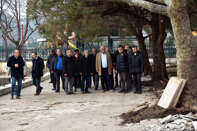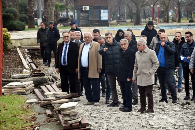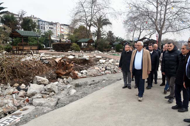 Yarın İstanbul’a Ekrem İmamoğlu Başkan ile görüşmeye gidiyorum; Buranın projesini hazırlayan mimar, peyzajcı ve mühendislerle görüşeceğiz. Malzeme listesini çıkaracağız ve hızlı bir şekilde buraya girmemiz gerek. Yaz ayında halkımızın geçmesine dolamasına açmamız gerekli. Şartlar ne olursa olsun kendi imkanlarımızla veya borçlanarak mutlaka yapacağız. Kararlıyız. Ama takdir edersiniz ki görülen yıkımlar çok fazla çok masraf var.