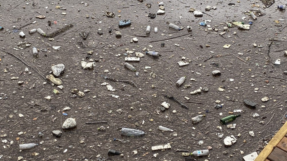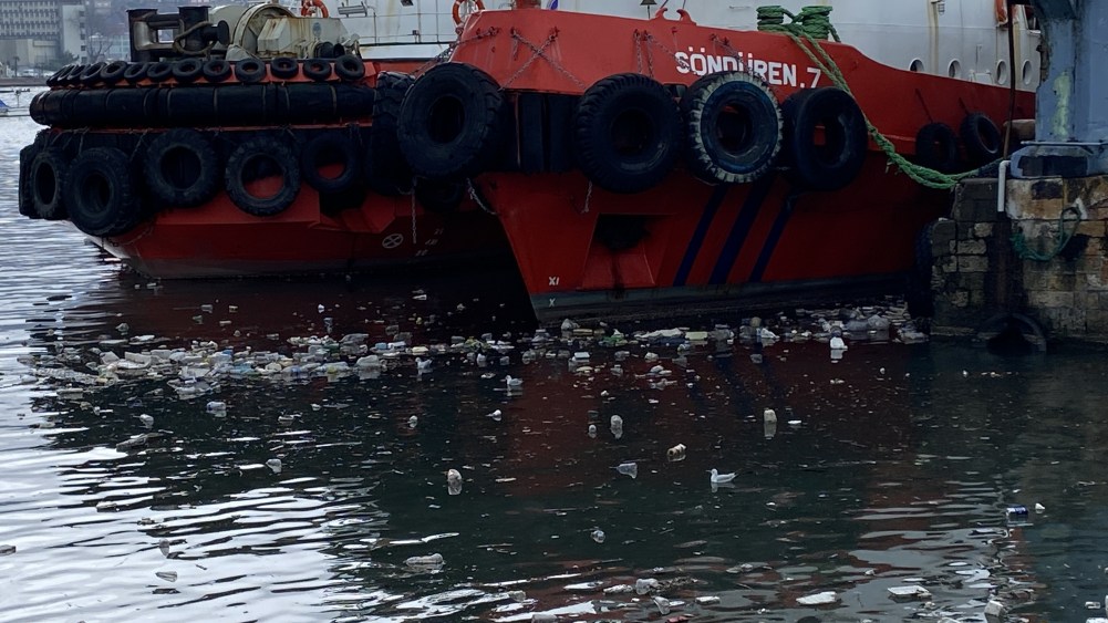 Zonguldak’ta denize atılan plastik atıklar, dalgalarla beraber limana vurdu.