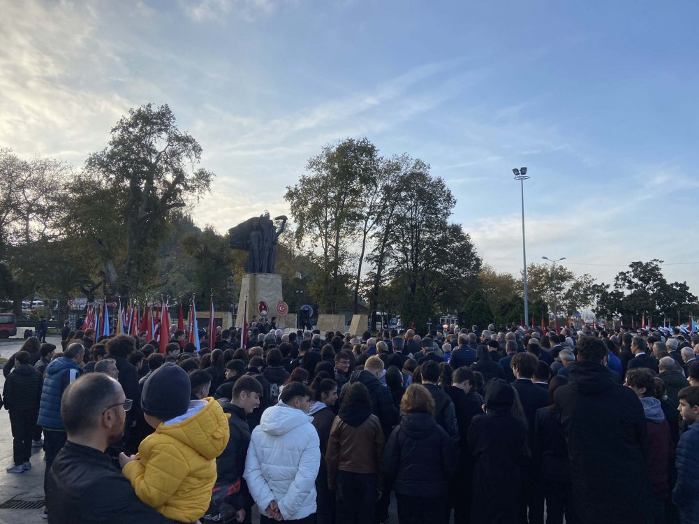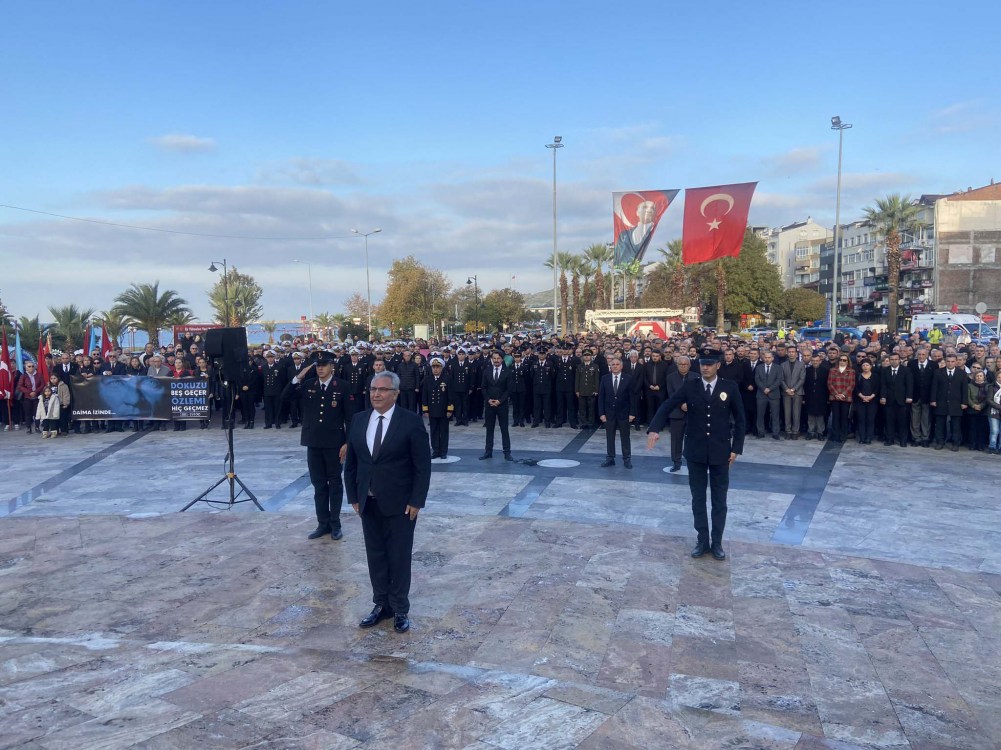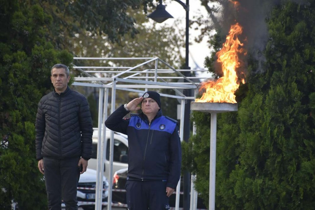 Gazi Mustafa Kemal Atatürk’ün ebediyete intikal saati olan 09.05’te sirenlerin çalmasıyla 2 dakikalık saygı duruşunda bulunuldu, ardından İstiklal Marşı okundu.