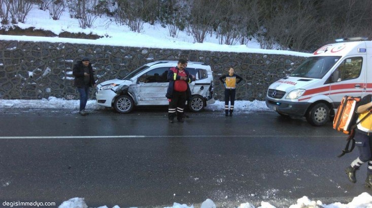 ilçesine bağlı Örencik köyünde meydana geldi. Aşırı buzlanma nedeniyle iki araç