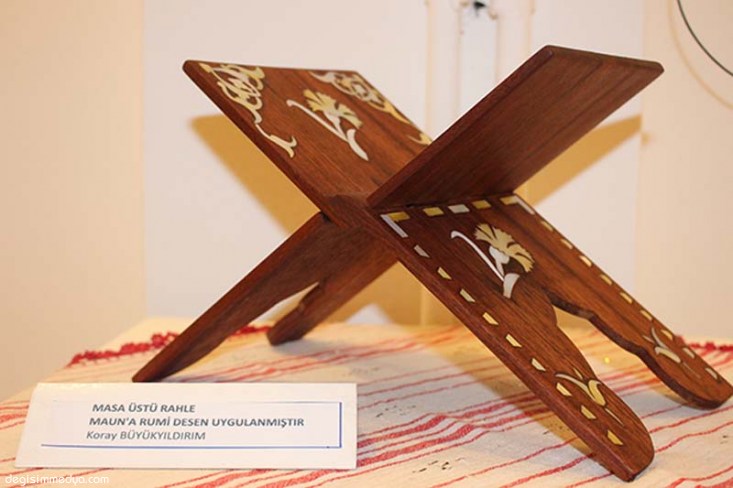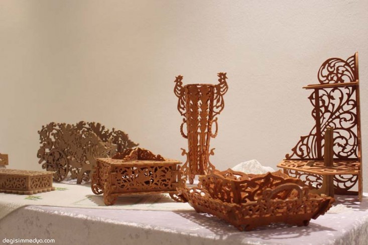 Açılışın ardından protokol üyelerine sergiyi gezdiren sedef kakma ve naht ustası Koray Büyükyıldırım, protokol üyelerine sergiyi gezdirerek, eserler hakkında bilgi verdi.