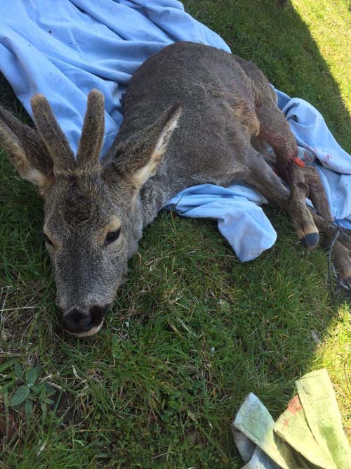 ekiplerin devriye yaptığı sırada yol kenarında gördükleri yaralı Karacayı