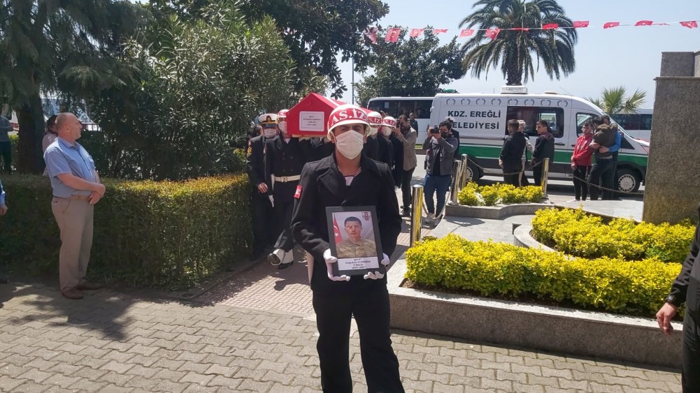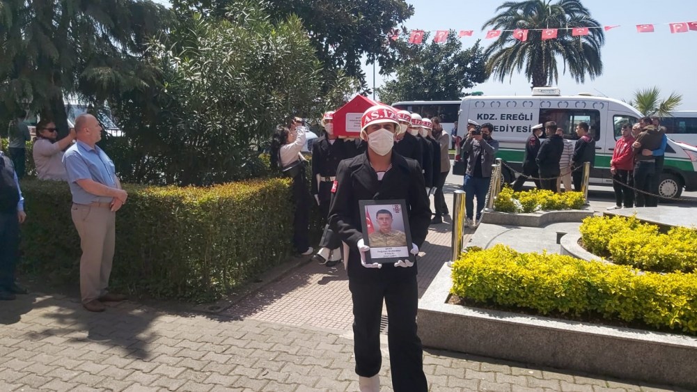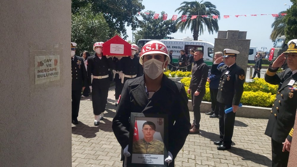 Türk Silahlı Kuvvetleri tarafından Irak'ın Kuzeyi'nde ki terör hedeflerine yönelik olarak gerçekleştirilen Pençe-Kilit operasyonunda şehit olan Karadeniz Ereğlili Uzman Er Doğukan Korkmaz'ın naaşı cenaze namazı için Bozhane Camii'ye getirildi.