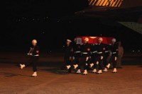 Hakkari'nin Şemdinli ilçesinde güvenlik güçleriyle bölücü terör örgütü PKK arasında çıkan çatışmada şehit olan Piyade Uzman Çavuş Gökhan Kurak'ın (28) naaşı, askeri uçakla memleketi Zonguldak'a getirildi.