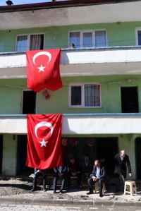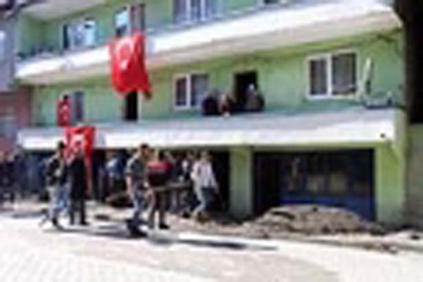 şehidin ailesinin evinin önüne dökülerek dolgu yapıldı. Şehidin cenazesinin ise