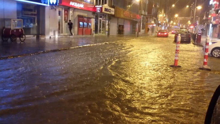 Zonguldak'ta akşam saatlerinde başlayan şiddetli yağmur şehirde hayatı durma noktasına getirdi. Kent merkezinde bulunan Gazipaşa Caddesi sular altında kaldı. Atatürk Devlet Hastanesi altında bulunan cadde ise adeta göle döndü. Araçlar yarım metrelik suda mahsur kalırken, mahsur kalan araçların yardımına görevliler koştu. Yükselen sudan geçmek isteyen bir yolcu otobüsü stop edince mahsur kaldı. İçinde yolcularıyla bekleyen otobüs kepçe yardımıyla çekildi.