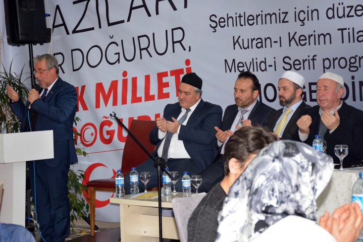 Programda tüm şehitler için belediye ve müftülük hocaları tarafından Kur'an tilaveti, ilahiler ve mevlid-i şerif okundu ve Afrin Zeytindalı harekatına katılan Mehmetçik için dualar edildi.