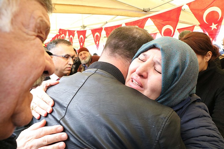 aylık eşi komiser yardımcısı Hafize Nur taziye çadırına geçti. Bayan askerin