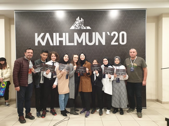 20 Şubat - 23 Şubat 2020 tarihleri arasında Kartal Anadolu İmam Hatip Lisesi tarafından hazırlanan KAİHLMUN’20 Konferansının açılışına katılan Cumhurbaşkanı Başdanışmanı Gülnur Aybet’in konuşması ile başlayan Model Birleşmiş Milletler konferansına öğrencilerimiz NATO komitesinde Suriye ve Kanada, DISEC komitesinde Güney Kore ve Hindistan, SOPECPOL Komitelerine Hollanda, Yunanistan ve Belçika ülkelerinin delegeleri olarak sunum yaptılar. Dört gün boyunca devam eden konferanslarda nükleer silah, terörizm, sömürgecilik, Doğu Akdeniz Enerji Politikaları hakkındaki tartışmalara katılıp dünya sorunları hakkında fikir sahibi olmuş ve bu sorunlara çözüm önerileri getirmeye çalışmışlardır. İngilizce yapılan tartışmalarda öğrencilerimize dil becerisi de kazandırılmaya çalışılmıştır.