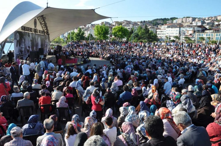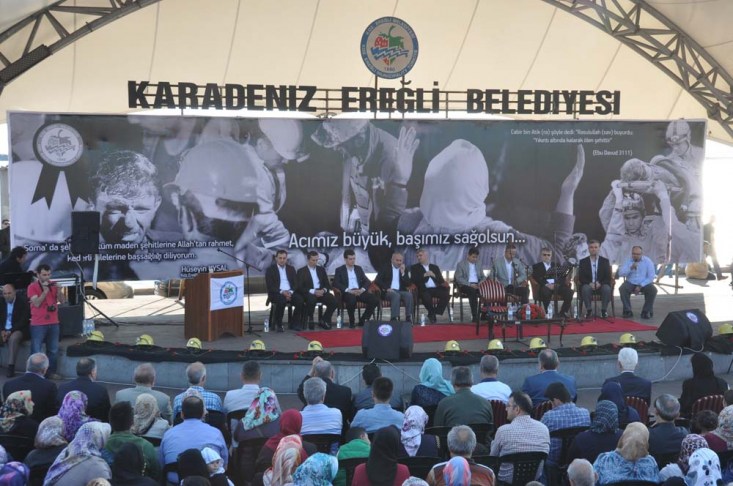Bugün burada Soma'da kaybettiğimiz ve ahrete uğurladığımız 301 madenci şehidimiz için bir araya gelmiş bulunmaktayız. Allah hepinizden razı olsun. Soma'dan gelen acı haber yüreklerimize bir kor gibi düşmüştür. Alınterine kömür karası değen yüreği ak insanların diyarı şehrimiz yaşanan bu büyük acıyı en derinden hissetmiştir. Karaelmas diyarından Soma'ya başsağlığı ve tüm madenci şehitlerimize Allah'tan rahmet diliyorum. Allah böyle acıları ne ülkemize, nede diğer ülkelere bir daha yaşatmasın. Acımızı paylaşan tüm dünya ülkelerine selam ve saygılarımı gönderiyorum. Ülkemizin başı sağ olsun.