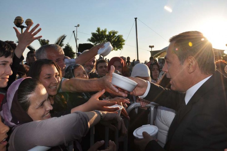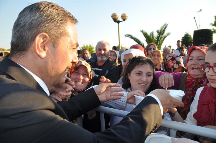 katılan Başkan Uysal yiyecek dağıttı. Bazı vatandaşlar ise Başkan Uysal'a sevgi