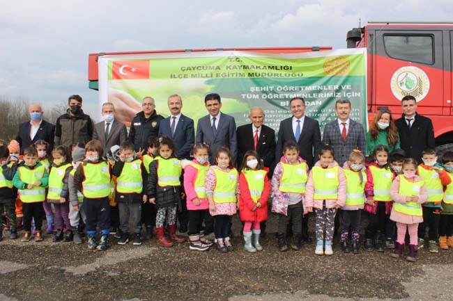 Zonguldak’ın Çaycuma ilçesinde 24 Kasım Öğretmenler Günü münasebetiyle Hayriye-Hayrullah Saki Anaokulu tarafından " Şehit öğretmenler ve tüm öğretmenlerimiz için bir fidan" sloganıyla ilçede fidan dikimi etkinliği gerçekleştirildi.