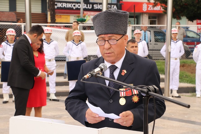 Atatürk Anıtı’ndaki törende anıta çelenk bırakıldı, saygı duruşunda bulunuldu ardından İstiklal Marşı söylendi. Muharip Gaziler Derneği Şube Başkanı Temel Şahin, güne ilişkin konuşmasında, 19 Eylül Gaziler Günü’nün bedeli canla ve kanla ödenerek bu toprakların ‘vatan’ olmasında ve devletin bekası uğrunda canlarını adayanların gurur ve şerefle hatırlandığı bir gün olduğunu söyledi. Şahin şöyle devam etti: