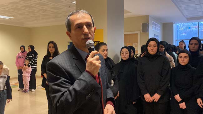Tören öncesi konuşan okul müdürü Adnan Karakurluk, “Başta Gazi Mustafa Kemal Atatürk olmak üzere aziz şehitlerimiz için bugün saygı duruşunda bulunacağız. Özellikle geçen hafta Pençe Kilit Harekatı’nda şehit düşen 9 şehidimiz için manevi huzurunda saygı duruşuna davet ediyorum” dedi.
