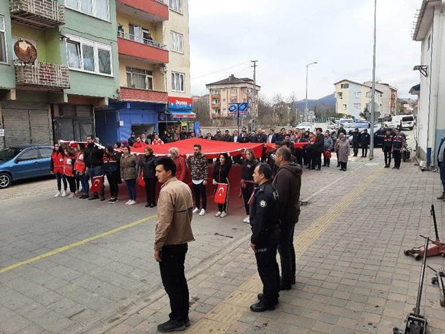 Zonguldak Bülent Ecevit Üniversitesi (BEÜ) Gökçebey Mithat-Mehmet Çanakçı Meslek Yüksek Okulu'nda eğitim gören öğrenciler, İdlib'de rejim unsurlarının hava saldırısında şehit olan Mehmetçikler için yürüyüş düzenledi. Saygı duruşu ve İstiklal Marşı'nın okunması ile çamurlu köprüden başlayarak çarşı meydanına ellerinde Türk bayraklarıyla toplanan öğrenciler, "Şehitler ölmez, vatan bölünmez" sloganları atarak yürüyüş yaptı.