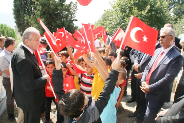 Turgut Reis Ortaokulu öğrencilerinden biri tarafından Orhan Seyfi Orhon'un "Gazimize" şiiri seslendirildi.
