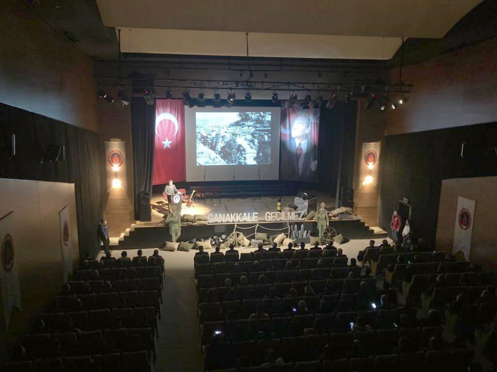 Konuşmaların ardından Tarih Öğretmeni Gürdal Özçakır, tarihi önemi açısından; Karadeniz Bölge Komutanlığı’nda görevli Astsubay Kıdemli Başçavuş Lokman Canikoğlu ise askeri açıdan Çanakkale Zaferi’ni anlattıkları sinevizyon eşliğinde bir sunum gerçekleştirdiler.