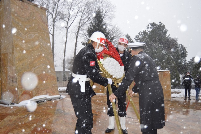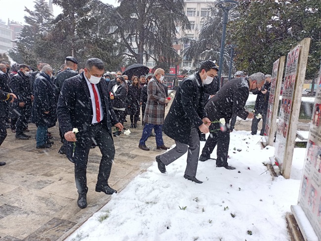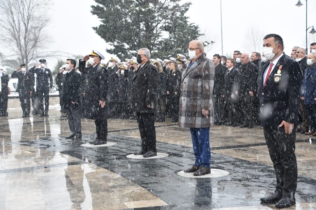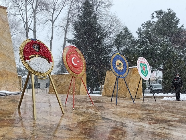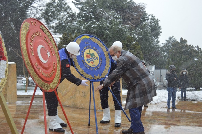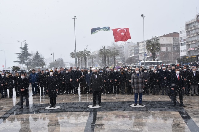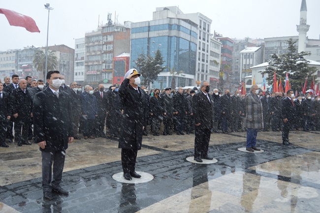 Kar yağışı altında gerçekleştirilen törenlere ilçe protokolünün tamamına yakını katıldı.