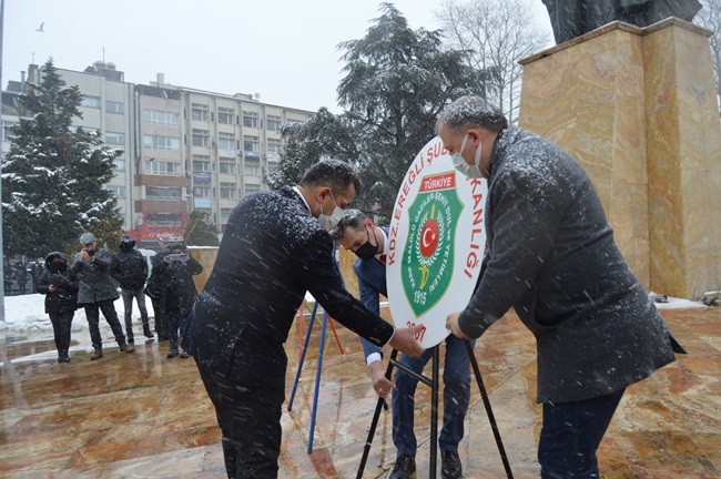 Türkiye Harp Malulleri Gaziler Şehit Dul ve Yetimleri Derneği Kdz. Ereğli Şube Başkanı Mehmet Öztürk, günün anlam ve önemine ilişkin yaptığı konuşmaya “107 yıldır kalbimizde sönmeyen, bir ocak gibi tüten Çanakkale’nin rüyası rüyamız, davası davamız, sevdası sevdamız…”sözleri ile başladı ve “Çanakkale her karış toprağında canların sebil olduğu, Bedir’in aslanlarını imrendiren kahramanlıkların diyarıdır. Adına destanlar yazılan, anaların ağıt, genç kızların türkü yaktıkları yerdir Çanakkale. Seni gönülden selamlıyorum. Çanakkale vatan, insanın yuvasını kurduğu ve huzur bulduğu yerdir. Baskı ve zulümden uzak, güven içinde özgürce yaşanan topraktır. Vatan sevgisi Yüce Allah’ın kalplerimize nakşettiği benzersiz bir duygudur. Kahraman ecdadımız soylu bir mücadele ile bu vatanı müdafaa ederken imanıyla güç almış, vatan sevgisiyle hayatta kalmıştır. Onlar; ezanımız susmasın, bayrağımız inmesin, namusumuz çiğnenmesin diye canlarını feda etmekten kaçınmadılar. Bu duygu ve düşüncelerle başta Kurtuluş Savaşı’nın Başkomutanı Gazi Mustafa Kemal Atatürk olmak üzere kurtuluştan bugüne kadar bayrak, ezan ve millet uğruna vatan toprağına bağrını emanet eden tüm şehitlerimizin ve hakkın rahmetine kavuşmuş kahraman gazilerimizin aziz hatıraları önünde saygıyla eğiliyor, rahmetle yad ediyorum. Şehitlerimizin emaneti şerefimizdir.”dedi.