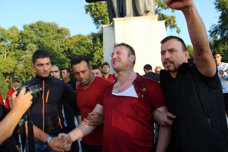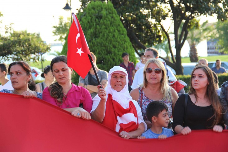"Vatan sana canım feda" şeklinde sloganlar atarak İstiklal Marşı'nı okudu.