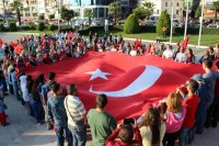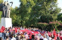 amacıyla Atatürk Anıtı önünde toplandı. Dev Türk bayrağı açan grup "Şehitler