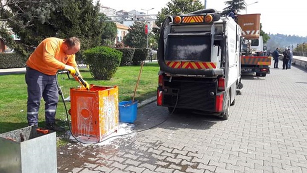 çalışmalarının yanı sıra sahil bandında bulunan çöp kovalarının tamamı dezenfekte