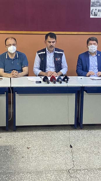 "Hasar tespitleri yapılmaya başlandı. Bu kapsamda 3 binamız metruk halde yıkık, üç binamız da ağır hasarlı olarak tespit edildi. Hasar tespitleri yine vatandaşlarımızın telef olan hayvanlarına ilişkin tespitleri, araç-gereç ziyanları, tarım alanlarındaki hasarların hepsi yarın itibariyle Bartın ilimizde tamamlanacaktır. Bu çerçevede ertesi gün de vatandaşlarımızın ödemeleri valiliğimiz koordinesinde tamamlanacaktır. Evleri ağır hasar gören vatandaşlarımız evleri ister yerinde isterse başka bir alanda TOKİ Başkanlığımızca yapım çalışmaları yürütülecektir. Şu an itibariyle Ulus ilçemize su verilmekte. Kumluca beldemizde arızalar vardı sel sebebiyle. Oraya da su verildi. Abdipaşa Mahallemizde beş mahallenin suyu problem yaşadı. Hasar gördü se sebebiyle, iki mahallemize su verildi. Üç mahallede arızalar en kısa zamanda giderilecektir. Şu anda köprü ve yollarımızda hasarlar mevcut. Hem özel idare hem de karayolları ekiplerimiz hasar tespitlerini yaptılar. Çalışmalar başladı. Bartın-Karabük yolu şu an itibariyle başka güzergahlardan veriliyor. Menfez ve köprülerde meydana gelen hasar sebebiyle yarın sabah en geç Bartın-Karabük yolundaki hasarlar giderilecek ulaşıma açılacaktır. Köylerimizi birbirine bağlayan menfez ve köprülerdeki hasarlar da hızlı bir şekilde özel idare ve karayolları ekiplerince giderilecektir. Bu çerçevede çalışmalarımızı hızlı bir şekilde yürütüyoruz. İnşallah en kısa zamanda kayıp Arife teyzemize ulaşacak hem de vatandaşlarımızın yaralarını saracak adımları atacağız. Tekrar Bartın, Kastamonu ve Sinop'a geçmiş olsun dileklerimi iletiyorum. Burada vatandaşlarımız müsterih olsun. Devletimiz tüm kurumlarıyla birlikte sahada. İlk andan itibaren vatandaşlarımızın eksiklerini gidermek için çalışmalarını an be an yürütmektedir. Bir ahenk ve seferberlik ruhu içerisinde yürütüyoruz. Son ana kadar bu anlayışla yürütmeye devam edeceğiz."