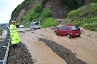Alaplı ve Akçakoca karayolu arasındaki tünel dağlardan gelen suyun oluşturduğu sel nedeniyle trafiğe kapatıldı, birçok araç çamura saplanarak mahsur kaldı.