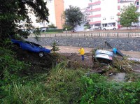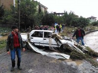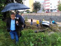Deresi'nde sürüklenmişti. Suların çekilmesinin ardından otomobilleri kurtarma