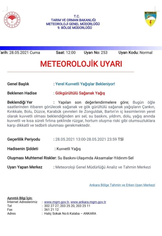 Hafta sonu için gök gürültülü sağanak yağış uyarısı yapılarak ani sel ve su baskınlarına karşı vatandaşlar uyarıldı...