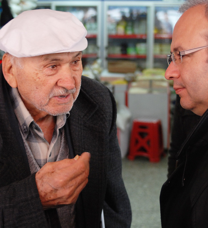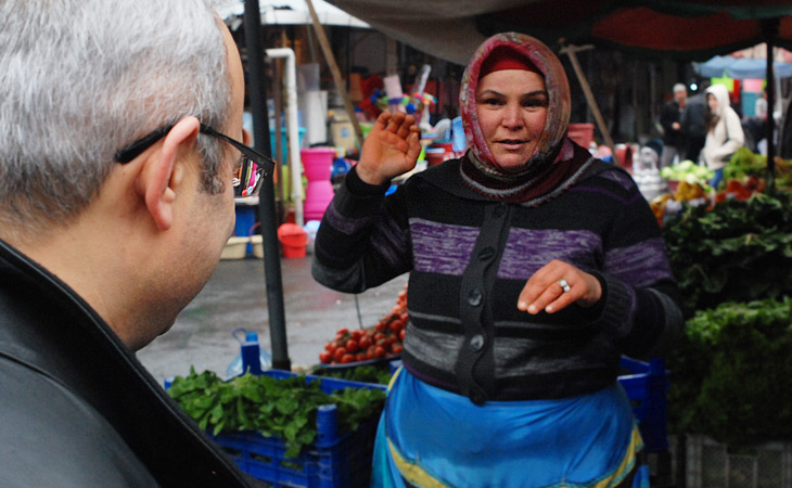 ziyaretinde, kimi zaman ilginç diyaloglarda yaşandı. Köylü esnaflardan bir