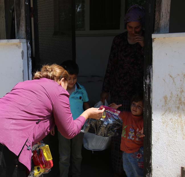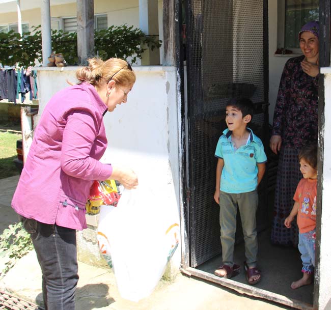 Akçakoca’da Kaymakamın, Belediye Başkanın ve Jandarma Komutanın eşleri sel felaketi yaşayan köyleri ziyaret etti.