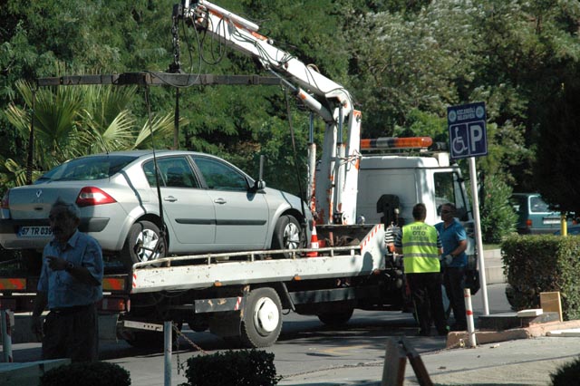 Ekilerde önce kibarca uyarıyor, dinlemeyenlerin aracını çekerek iyi bir ders veriyor...