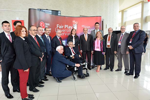 Düzce Üniversitesi'nde düzenlenen Fair-Play Konferansına, TMOK Fair-Play Komisyonu üyeleri ile birlikte Fair-Play ödüllü Fiziksel Engelliler Derneği Başkanı İsmail Şentürk, Fair-Play ödüllü gazeteci İhsan Çetin ve Türkiye Şampiyonu Boksör Buse Naz Çakıroğlu katıldı.