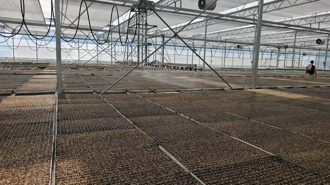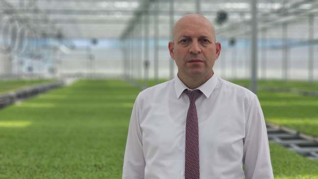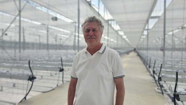 "Ben de bu organize sanayi bölgesinde aynı zamanda yatırımcılardan birisiyim. 25 bin metrekare alanda 20 bin metrekare topraksız tarım yapılacak bir kapalı alan yaptık. Gördüğünüz üzere de tamamen kokopit (hindistan cevizi torfu) üzerinde topraksız tarım yapılacak. Ve suyumuzu kendimiz üreteceğiz. Ozmoz ile arıtarak kendi pH derecelerini ve suyun derecelerini belli bir noktaya getirdikten sonra da kendi suyumuzu kendimiz üretip burada hem teknolojik olarak otomasyonda tamamen verileri otomasyona girerek ilaçlamaları, gübrelemeleri ve suları da belli değerlerde vererek biz burada salkım domates üretmeyi düşünüyoruz."