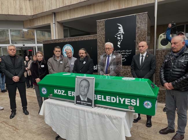 Kdz. Ereğli Belediye Meclisi önceki dönem üyelerinden, CHP Eski İlçe Başkanı Şerif Sertan Ocakçı’nın vefatı nedeniyle Kdz. Ereğli Belediyesi önünde tören düzenlendi.