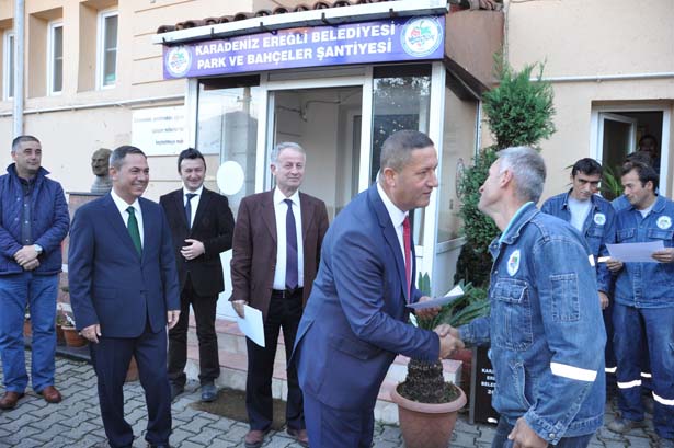 Kdz.Ereğli Belediye Başkanı Hüseyin Uysal, Park ve Bahçeler Müdürlüğü şantiyesine giderek, işçilerle bir araya geldi.
