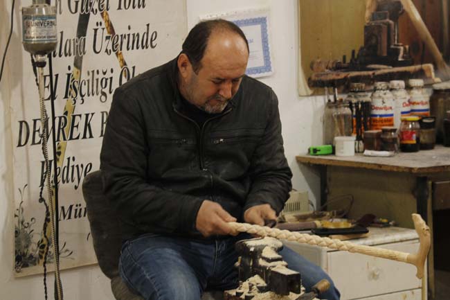 "Merhum Münteka Çelebi ustamın yanında bu işe başladım. Biz burada Münteka Ustamın actığı kursa 50 kişi başlamıştık. Daha sonradan diger arkadaşlar bu meslek yerine fabrikaları tercih etti. Ben bu mesleği sevdiğim için devam ettim. Ve 1993 yılında Münteka usta vefat edince Oğlu Rüştü Çelebi ile sanat eserlerini Kızılcık ağacına işledik. 2013 yılında oda vefat edince bu sanatın ve mesleğin devam edebilmesi için Münteka ustamın adını yaşatıyorum."