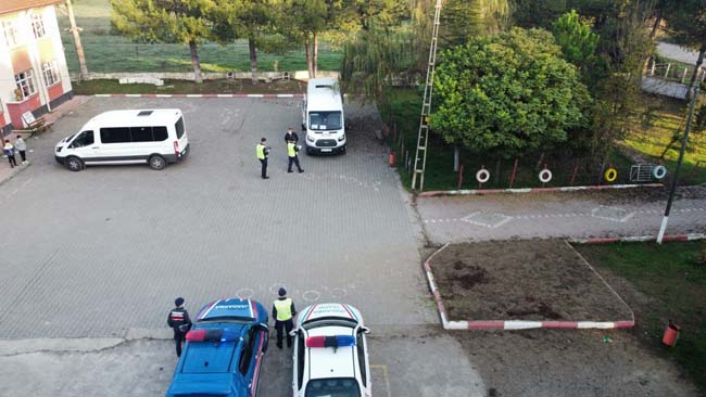 Zonguldak İl Jandarma Komutanlığı tarafından 2021-2022 Eğitim Öğretim Yılı içerisinde planlanan “Okul Önlerinde ve Okul Servis Araçlarına” yönelik, servis güzergâhlarını takip edip etmedikleri, öğrenci indirme ve bindirme kurallarına riayet edip etmedikleri, hız kuralları ve öğrenci haricinde yolcu alıp almadıkları hususlarında drone destekli denetim yapıldı. Denetimlerde ekipler sürücüleri kurallara uyulması noktasında uyarılarda bulundu.