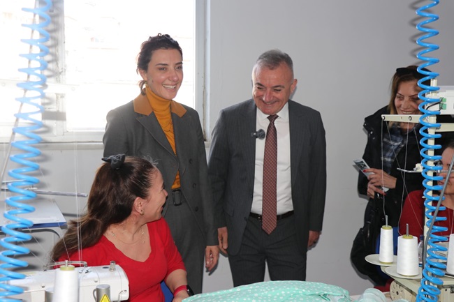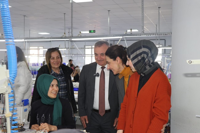 Sesli ile belediye meclis üyeleri çalışan tüm kadınları tek tek gezerek göreve geldiklerinde her zaman kapılarının kendilerine açık olacağını söyledi.
