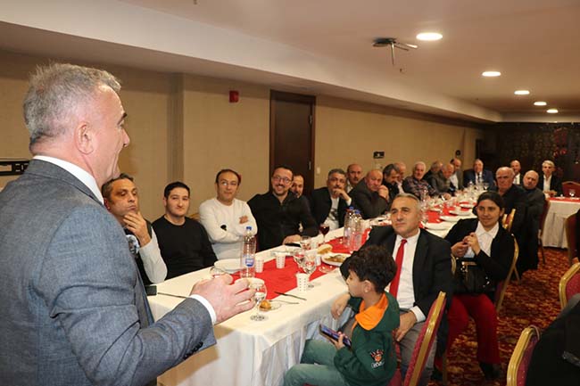 Kdz. Ereğli Belediyesi önceki dönem başkanlarından Murat Sesli gecede yaptığı konuşmada yöresel derneklerin sorunlarını bildiklerini belirterek göreve gelir gelmez yöresel dernek evlerinin tadilatını yaparak modern bir hale getireceklerini söyledi. Kdz. Ereğli ilçesinde festivallerin en güzel şekilde yapılmaya devam edeceğine vurgu yapan Sesli, ilave olarak gençler için rap ve rock festivalleri yapacaklarını dile getirdi. Sesli konuşmasında şu sözlere yer verdi: “Şu an dernek evlerinde sıkıntılarınız olduğunu biliyorum. Oraların tadilata ihtiyacı var. Göreve geldiğimizde buraları yeniden elden geçirip modern bir hale getireceğiz. Kdz. Ereğli festivallerle anılan bir şehir. Göreve geldiğimizde Kdz. Ereğli yine festivaller şehri olacak. Hatta gençlerimiz için rap ve rock festivali yapmayı planlıyoruz. Ayrıca yöresel derneklerimizin yapacağı etkinliklerin senede bir defa tüm maliyeti bizim tarafımızdan karşılanacak. Konaklamasından, yemeğine, sanatçısına kadar masrafları biz üstleneceğiz. Yöresel derneklerimizin yapacakları etkinliklerle yaz ayını dolu dolu yaşarız. Yöresel dernekler bizim için çok önemli. O yüzden de her türlü desteği vereceğiz. 2007-2009 yılları arasında 20 aylık bir dönemde Kdz. Ereğli’ye çok büyük hizmetler yaptık. Kdz. Ereğli’nin her mahallesine 120 bin ton asfalt, taş duvarlar ve alt yapısını yaptık. O dönemde 700 öğrenciye Türkiye’de ilk defa burs verdik. Bizden sonra da öğrencilerimize burs verilmedi. ‘Cumhuriyet’imizin 100. Yılında 100 proje ile geliyoruz’ sloganımızın içerisinde 10 mega proje, 90 tanede çoğunluğu sosyal proje olmak üzere belediyemize gelir getirici bir çok proje var. Kdz. Ereğli’den dışarıya okumaya giden maddi durumu iyi olmayan öğrencilerimize her ay 5000 TL burs vereceğiz. Belediye market kuracağız. Burada 2 bin aileye belediye kart vererek bununla ihtiyaçlarını karşılayabilecekler. Ramazan aylarında belediye, ERDEMİR, iş insanlarımız kumanya veriyor. Kumanya paketlerinin içi hemen hemen aynı. Belki o insanın bulgura, pirince değil de temizlik malzemesine, kahvaltılığa ihtiyacı var. Vereceğimiz kart ile vatandaşlarımız marketten et ve tavuk ürünleri hariç her türlü ihtiyacını karşılayabilecek. Türkiye’de en büyük gezi organizasyonunu 3 bin 500 kadınımızı 67 otobüsle Çanakkale’ye götürerek biz yaptık. Mayıs ayından itibaren kadınlarımıza buradan sesleniyorum; gezilere hazır olun. Mayıs ayından itibaren Çanakkale, Anıtkabir, Kapadokya, Mevlana, Eyüp Sultan, Ayasofya, Safranbolu, Abant, Burdur Salda Gölü ve Isparta Gülbahçelerine gezilere gideceğiz. Kadınlarımıza önem veriyoruz dedik ve meclis listemizde 11 kadınımıza yer verdik. Bütün belediye meclis üyesi adayları listesine bakabilirsiniz. Şöyle bir şey akıllara gelebilir; bu kadar proje yapıyorsun, 5 bin TL burs, 5 bin TL alışveriş; bunların parası nerden karşılanacak? Kdz. Ereğli Belediyesi’nin şu anki bütçesi 1.4 milyar TL. Eski parayla 1 triyon 400 milyar TL. Ben ticaret yapıyorum. Paranın nasıl yönetileceğini iyi bilirim. Parayı doğru yöneteceğiz ve çalmayacağız, çaldırmayacağız. Ayrıca projelerimiz içerisinde mevcut bütçeyi dahada yukarılara çekecek gelir getirici bir çok projemiz var. Bunları hayata geçireceğiz. Vaat ettiğimiz tüm projelerimizi hayata geçirebiliriz. Kdz. Ereğli’de 30 senedir bir çok şey yapılmamış. İnsanlar inanamıyor. Daha önce nasıl hizmet ettiysek bu projelerimizin hepsini de hayata geçireceğiz. Şu ana kadar projelerini açıklayan hiç kimse yok. Biz projelerimiz üzerinde uzun süredir çalışıyoruz. Tüm projelerimiz hazır ve bunları sosyal medyamızda ve toplantılarımızda açıklıyoruz. Bunun yanında Kdz. Ereğli sahilimizi en güzel şekilde yapacağız. Festivallerin en iyisini yapacağız. Bunları yaparken ‘Her noktaya eşit hizmet’ anlayışı ile tüm mahallelerimize de hizmet edeceğiz.”