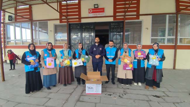Alaplı İlçe Müftülüğü Fatih Mahallesi Kur’an Kursu öğrencilerinin el emeğiyle hazırlanan yardımlar, Nurdağı İlçe Müftüsü Muhammed Ayyıldız ve Vaiz Meryem Kavak koordinasyonunda görevli ekipler tarafından çocuklara tek tek teslim edildi. Soğuk kış günlerinde ulaştırılan atkı ve bereler, çocukların yüzünde tebessüme neden oldu.