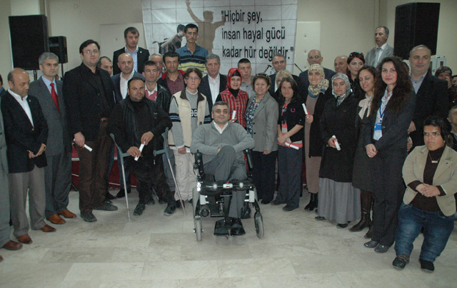?Bu yıl Engelliler Şölenimizin onuncusunu gerçekleştiriyoruz. 10. Şölenimiz için Şanlıurfa?dan 12 kişilik sıra gecesi ekibi getirdik. Üyelerimiz ve aileleri için farklı bir eğlence olmasını arzu ettik. Organizasyonda emeği geçenlere de plaket takdim ediyoruz. Bu arada 5 engellimize de akülü sandalye verdik. Önümüzdeki hafta da 15 adet daha teslim edeceğiz. Bu akülü sandalyeler hayırseverlerin ve İlçe Milli Eğitim Müdürlüğünce okullarda yürütülen ?Engelleri Kaldıralım? kampanyası kapsamında alınan bağışlarla okulların bizzat kendilerinin aldığı akülü sandalyelerdir. Bunları da ihtiyaç sahibi engellilere verdik ve vermeye de devam edeceğiz.?