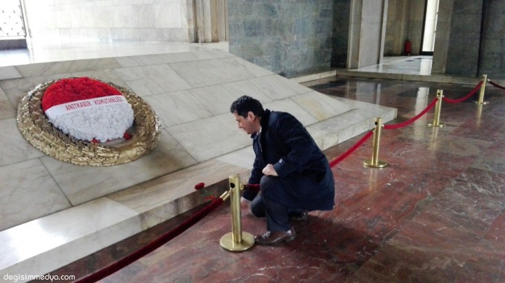 diyerek söz vermek amacıyla Ulu Önder Mustafa Kemal Atatürk'ün manevi huzurunu